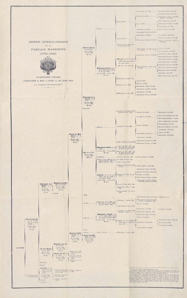 Document du mois source: Arbre généalogique de la famille Hassinite_1705-1942_Pierre Grandchamp -Tunis 1942 1 – Gauche111111
